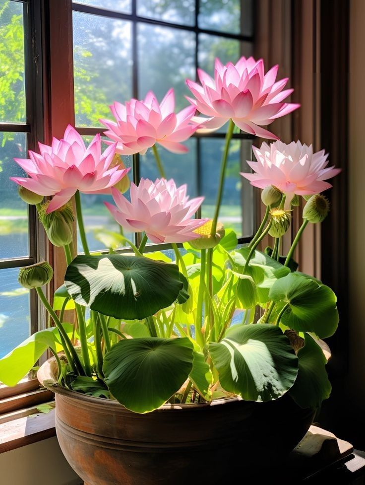 Lotus plants contribute to a refreshing ambiance but primarily purify air in outdoor or semi-outdoor water environments—they add both beauty and a sense of calm.